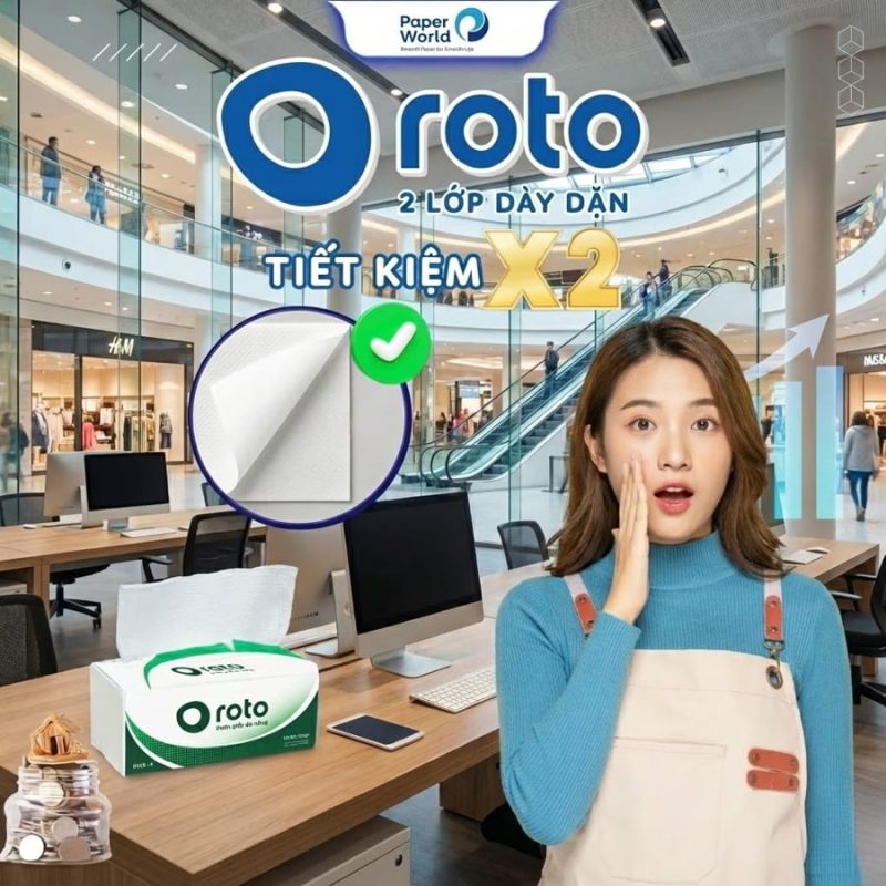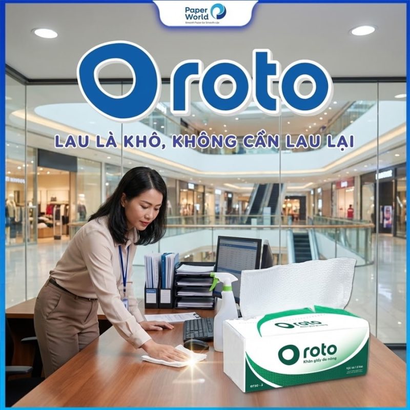 | 2 | Khăn Giấy Lau Tay Roto 22-2 | Gói 100 tờ | Giấy dai, ít bụi, phù hợp dùng thường xuyên | ~ 15.000 / gói |