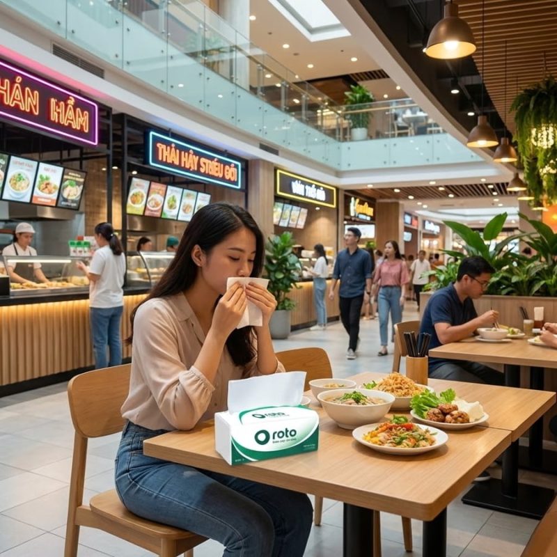 - Khu ẩm thực (food court) có lượng sử dụng khăn giấy lau tay rất lớn mỗi ngày.