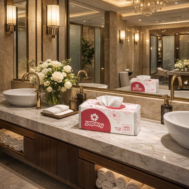 Gợi ý sản phẩm: Khăn giấy Japani 2 lớp cao cấp, giấy mịn – thấm nhanh, mang lại trải nghiệm sang trọng cho khách hàng.