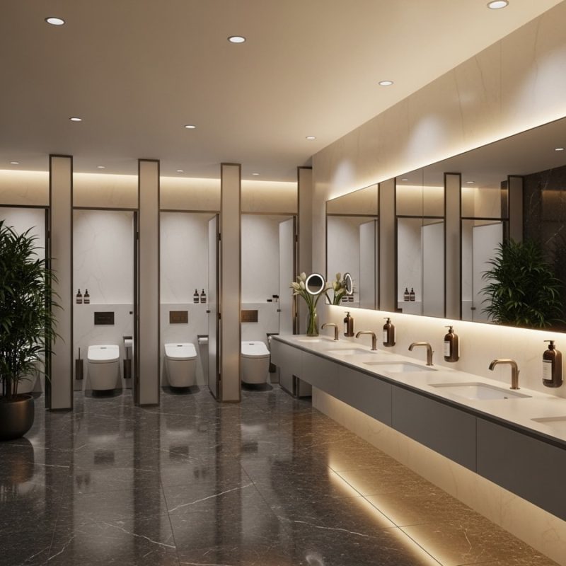 2. Toilet văn phòng – Thay giấy theo ca hoặc 2–3 lần/ngày