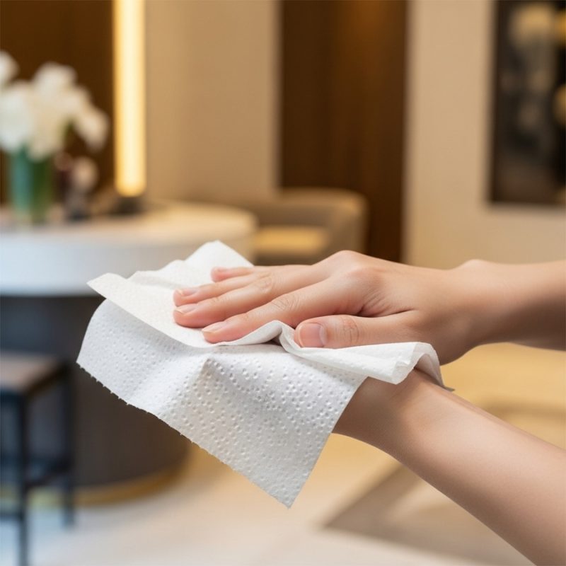 | 1. Khả năng thấm hút và độ dai | Giấy có cấu trúc sợi dày, bền, thấm hút nước nhanh, không rách khi ướt | Chỉ cần 1–2 tờ để lau khô tay, giảm lãng phí, tiết kiệm chi phí |