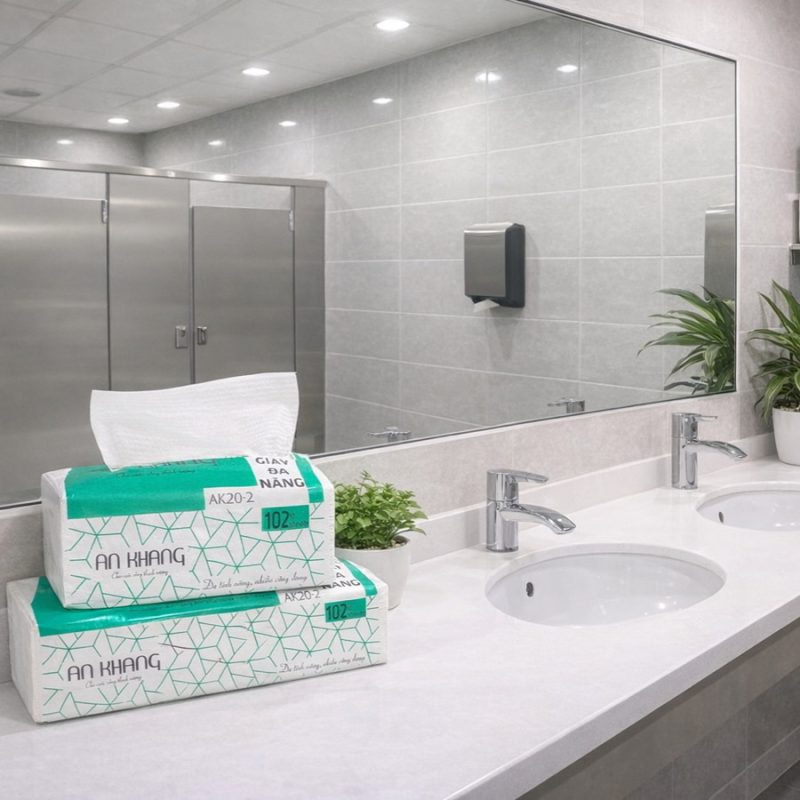 Gợi ý: An Khang 20-2 – loại khăn giấy tiêu chuẩn, giá sỉ tốt, không rách khi ướt, rất phù hợp với khu công nghiệp, nhà máy hoặc khu vệ sinh công cộng lưu lượng cao.