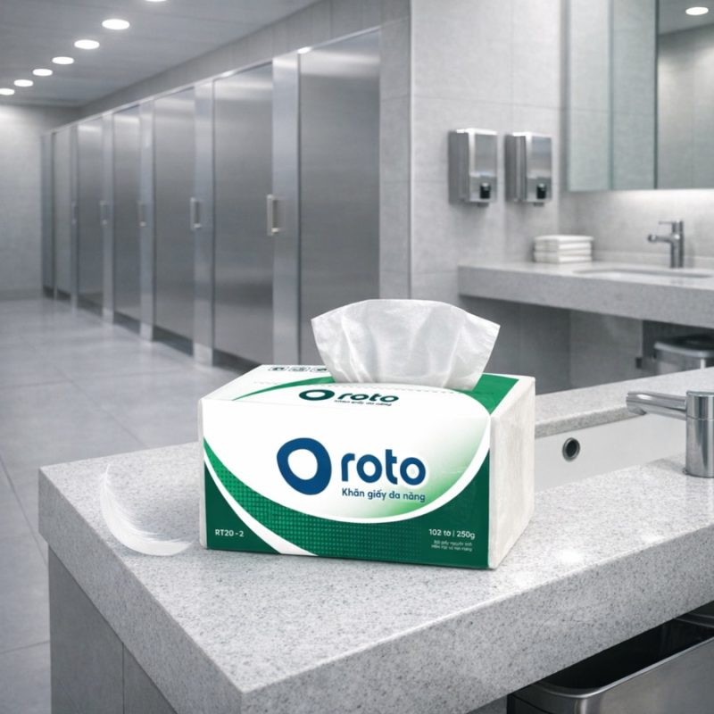 Gợi ý: Roto 22-2 – giấy 2 lớp cao cấp, thấm hút nhanh, dày dặn, lý tưởng cho nhà vệ sinh đông người.