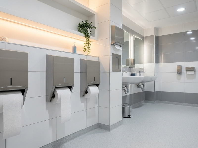Ngoài ra, các bệnh viện nên trang bị hộp đựng giấy vệ sinh khóa chuyên dụng tại những khu vực này. Điều này vừa giúp kiểm soát lượng giấy tiêu hao, vừa nâng cao tính thẩm mỹ, giữ giấy luôn sạch sẽ, khô ráo – phù hợp với tiêu chuẩn vệ sinh trong môi trường y tế.
