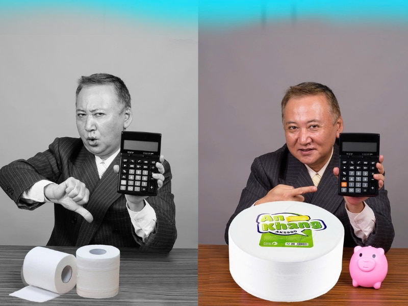 Nguyên nhân chính đến từ việc mỗi cuộn giấy lớn (500g – 1kg) có thể thay thế 15–20 cuộn giấy nhỏ, nhưng lại có chi phí thấp hơn tính theo từng mét giấy. Thêm vào đó, việc thay giấy ít hơn trong ngày giúp tiết kiệm nhân công lao động và giảm thiểu lãng phí do sử dụng không kiểm soát.