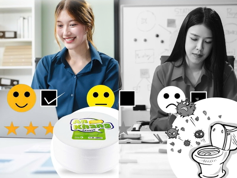 Thói quen dùng giấy vệ sinh giá rẻ, chất lượng thấp cũng khiến giấy dễ bị rối, kẹt trong hộp đựng, gây khó lấy – điều này vô tình tạo nên ấn tượng “rẻ tiền” trong tâm trí khách hàng, ảnh hưởng trực tiếp đến giá trị thương hiệu.