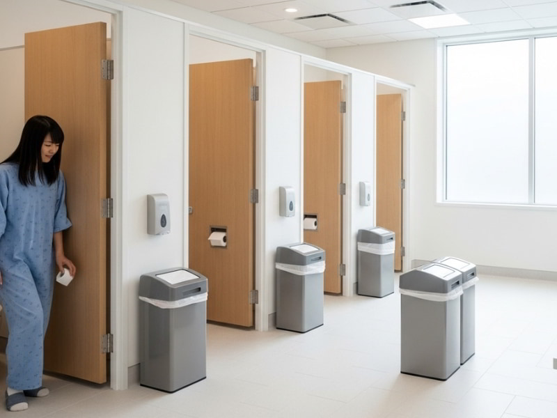 - Trang bị thùng rác có nắp trong từng buồng vệ sinh.