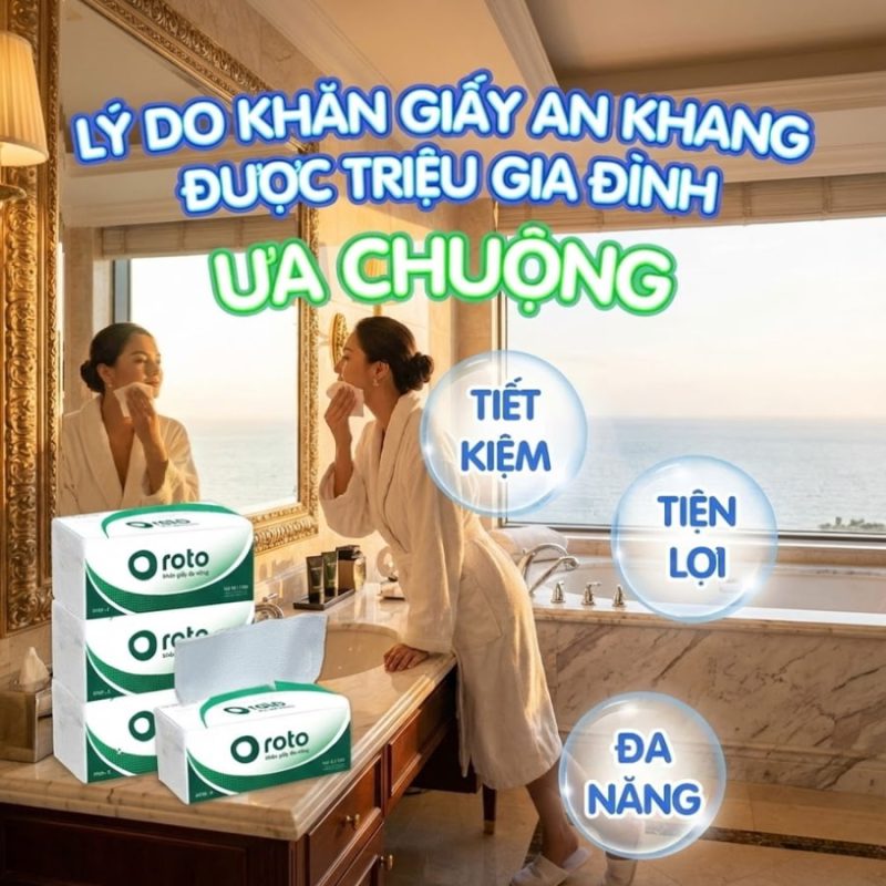 - Nhà vệ sinh: khăn giấy thấm hút tốt, dai, hạn chế rách khi sử dụng