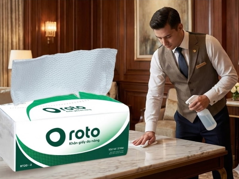 | Phòng khách sạn (phòng riêng) | Thấp – trung bình | – Khăn giấy lau tay cao cấp- Khăn giấy cuộn nhỏ hoặc gấp thiết kế đẹp | – Mềm mại- Thấm hút nhanh- Tính thẩm mỹ cao | – Tăng cảm giác sang trọng- Nâng cao trải nghiệm khách lưu trú |