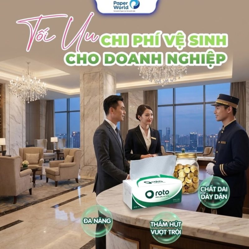 | Dễ chuẩn hóa quy trình phục vụ | Sử dụng đồng bộ một loại khăn giấy chất lượng cao cho toàn bộ khu vực (WC, nhà hàng, khu công cộng) giúp quản lý dễ dàng và tạo trải nghiệm nhất quán cho khách hàng. | – Chuẩn hóa vận hành toàn hệ thống- Nâng cao trải nghiệm khách hàng- Gia tăng hình ảnh chuyên nghiệp & chỉn chu của khách sạn |