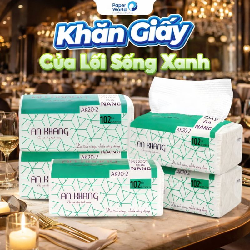 Dòng An Khang là giải pháp dành cho doanh nghiệp sản xuất, nhà máy, trường học, nhà ăn tập thể. Ưu điểm là giấy dày vừa phải, không rách khi ướt, thấm hút dầu mỡ tốt – đặc biệt phù hợp với nhu cầu sử dụng số lượng lớn mỗi ngày.