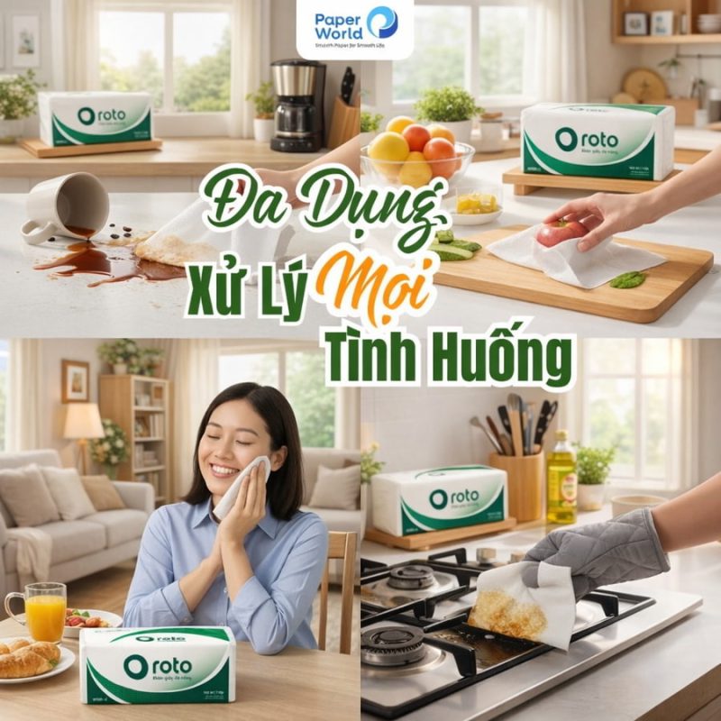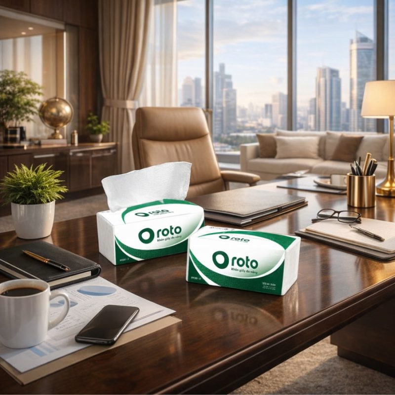 Tại Thế Giới Giấy, dòng khăn giấy Roto được thiết kế chuyên biệt cho văn phòng – dễ rút từng tờ, mềm dai, không bụi, phù hợp với hộp đựng giấy chuẩn Roto. Giải pháp này không chỉ tối ưu chi phí vận hành mà còn nâng cao trải nghiệm nhân viên, giúp không gian làm việc luôn chuyên nghiệp và vệ sinh.