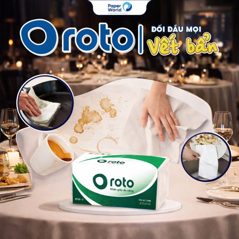 Roto là dòng sản phẩm được phát triển chuyên biệt cho văn phòng, tòa nhà, trung tâm thương mại và các khu vực công cộng. Giấy có độ dai cao, dễ xé, thấm hút nhanh và được thiết kế tương thích với hộp đựng giấy Roto – giúp thao tác lấy giấy thuận tiện, tiết kiệm và sạch sẽ.