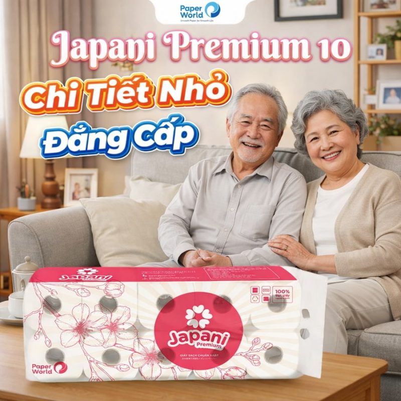 Thế Giới Giấy khuyến nghị sử dụng dòng Japani cao cấp, với chất giấy mịn tự nhiên, an toàn tuyệt đối cho da nhạy cảm. Sản phẩm vừa hỗ trợ chăm sóc vệ sinh cá nhân nhẹ nhàng, vừa giúp người lớn tuổi tự chủ sinh hoạt hàng ngày – góp phần nâng cao chất lượng sống trong từng chi tiết nhỏ.