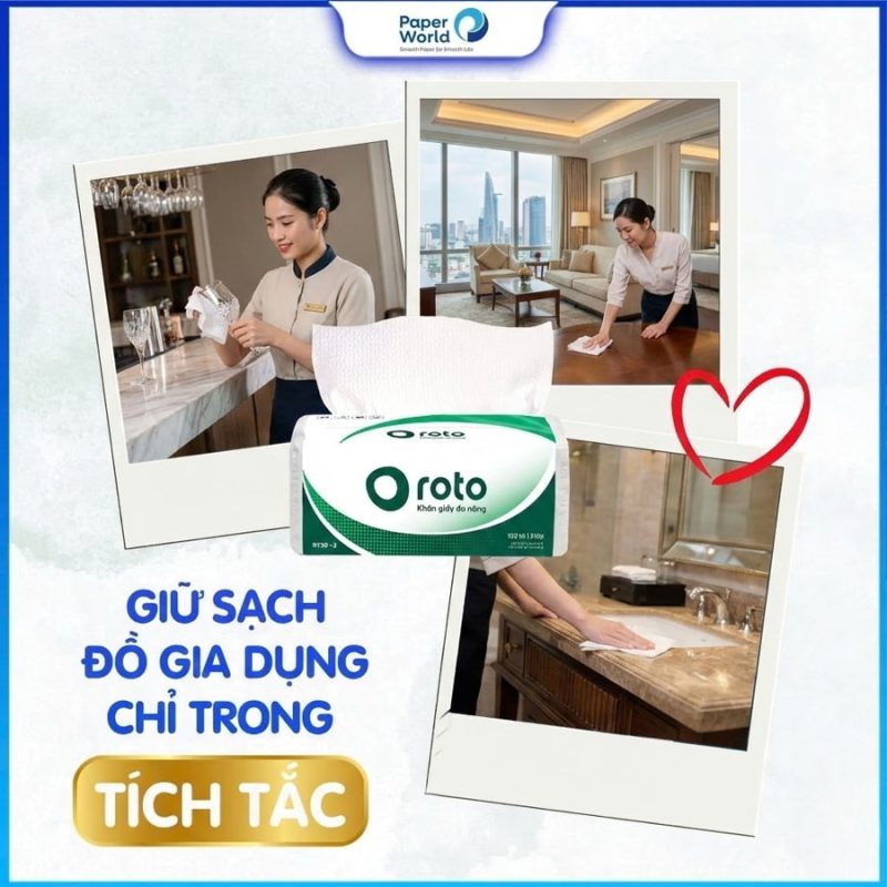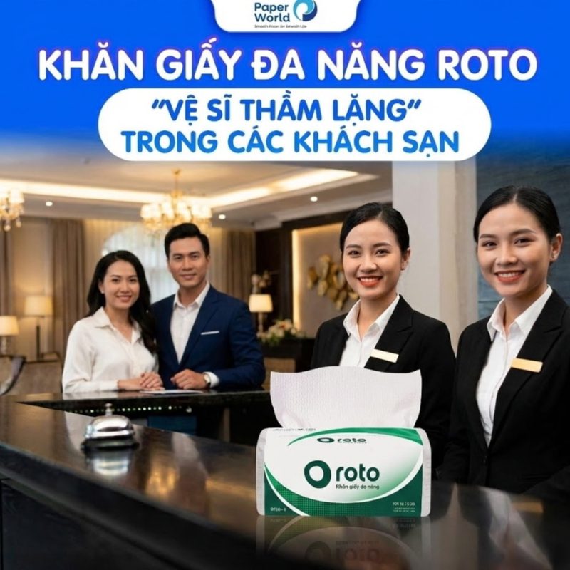 Khách sạn 1–2 sao, homestay hoặc nhà nghỉ thường ưu tiên dòng khăn giấy lau tay giá sỉ, 1–2 lớp, định lượng vừa phải nhưng vẫn đảm bảo thấm hút nhanh. Dòng An Khang hoặc Roto của Thế Giới Giấy là lựa chọn lý tưởng, giúp tiết kiệm chi phí vận hành mà vẫn giữ được vệ sinh sạch sẽ.