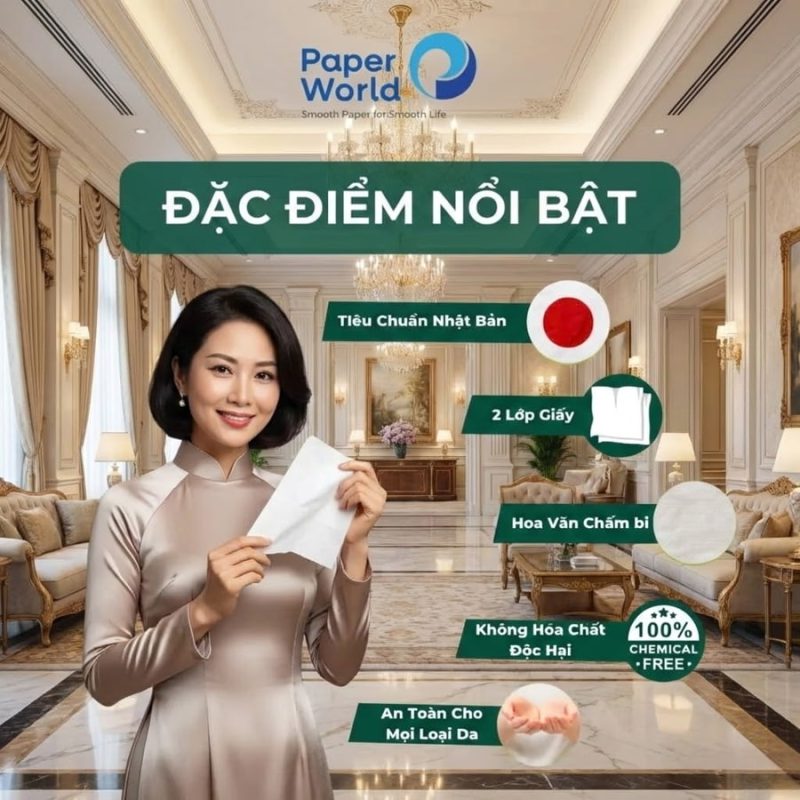 | Khăn giấy Japani 20-2 | 2 lớp | 16.000đ | 12.000đ/gói | Khách sạn 4–5 sao, phòng VIP |
