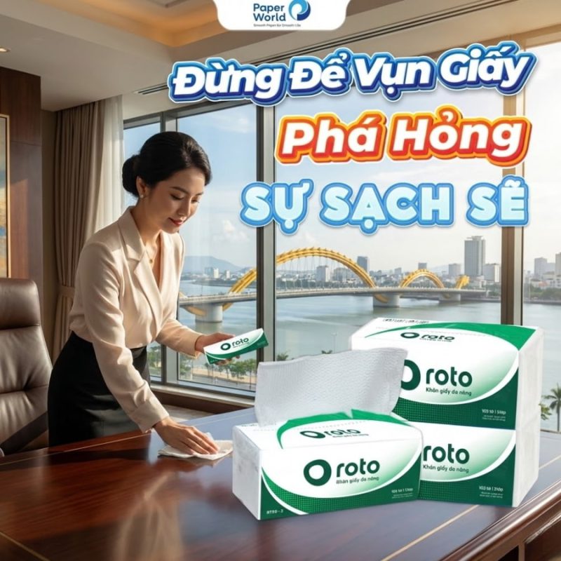 Tại môi trường văn phòng, yếu tố thẩm mỹ và trải nghiệm người dùng rất được quan tâm. Các dòng khăn giấy lau tay chất lượng cao tại Đà Nẵng như Japani 20-2 hoặc Roto 22-2 là lựa chọn hàng đầu với lớp giấy mềm mịn, trắng tự nhiên, không mùi, không kích ứng da. Sản phẩm thường đi kèm hộp đựng giấy sang trọng, góp phần nâng tầm hình ảnh chuyên nghiệp cho doanh nghiệp. Đặc biệt, với chính sách giá sỉ linh hoạt và hỗ trợ giao hàng nhanh từ Thế Giới Giấy Đà Nẵng, bạn hoàn toàn yên tâm về nguồn cung ổn định cho cả hệ thống văn phòng, showroom hoặc trung tâm đào tạo.