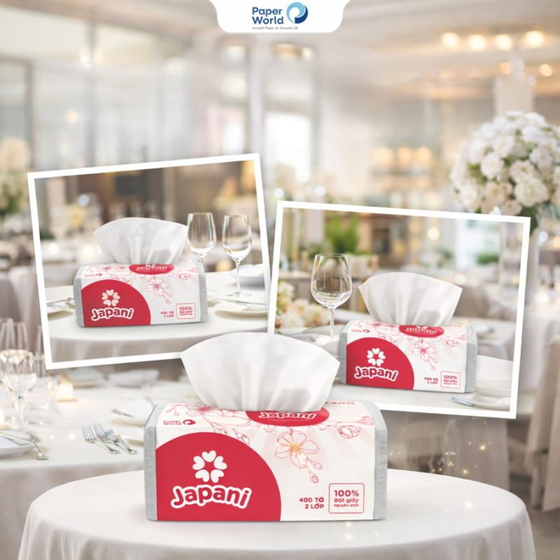 | Japani 20-2 (2 lớp) | Gói rút – giấy mềm, dai | Từ 14.000/gói | 102 tờ/gói, 30gsm | Nhà hàng, văn phòng, quán ăn |