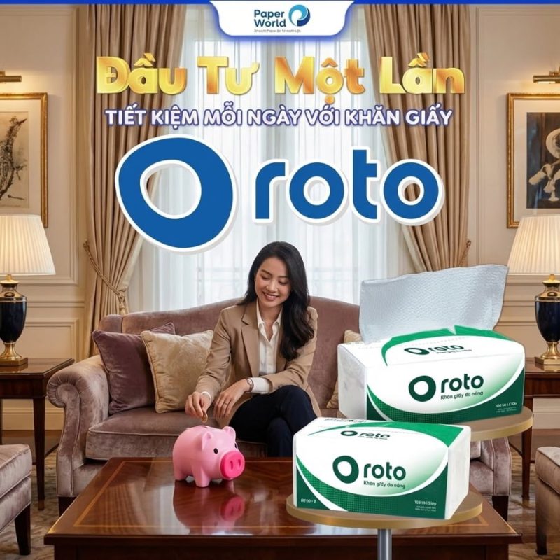 | Khách sạn 2–3 sao | Khăn giấy lau tay 2 lớp | Thế Giới Giấy Roto | Gói 100 tờ | Từ 12.000 VND/gói | Phòng tắm, WC |