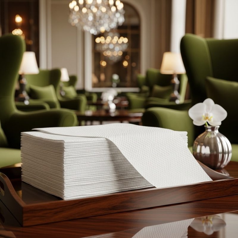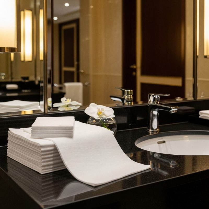 Năm 2026, khăn giấy lau tay khách sạn cần đảm bảo thấm hút tốt, bền, không xơ bụi và thân thiện môi trường, góp phần nâng cao trải nghiệm khách hàng và hình ảnh chuyên nghiệp của khách sạn.
