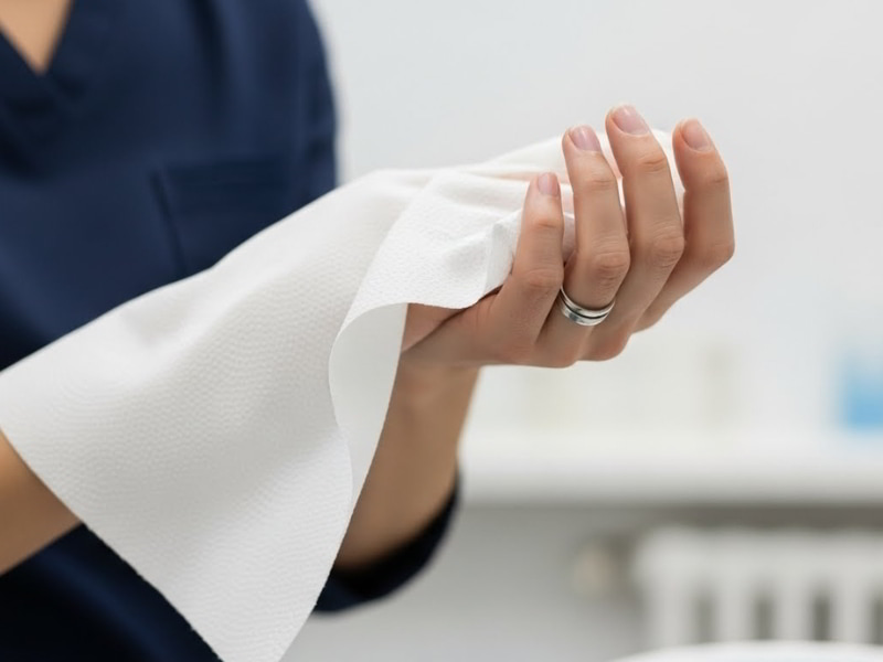 - Khăn giấy không bụi cần thấm hút nhanh và đều, giúp làm khô tay chỉ sau 1–2 lần lau.