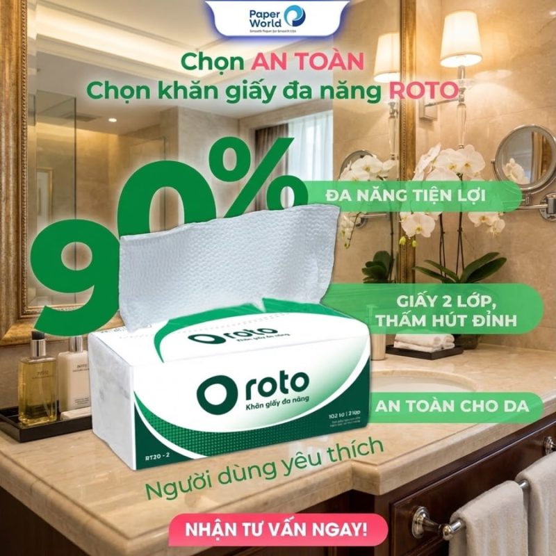 | Thành phần giấy | 100% bột giấy nguyên sinh từ gỗ tự nhiên, không pha tạp | Mềm mịn, an toàn cho da, tạo cảm giác cao cấp khi sử dụng |