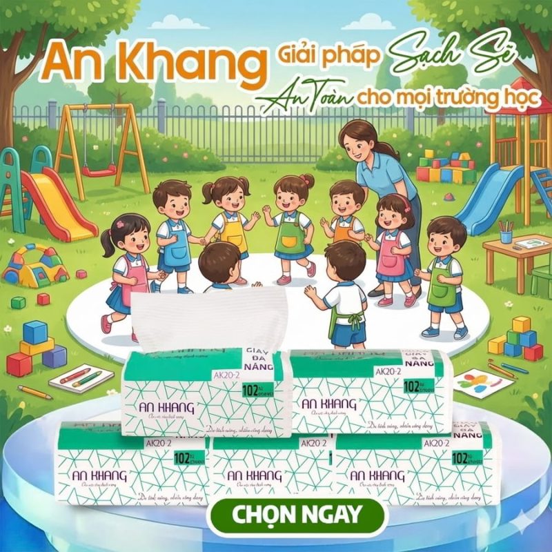 Dòng An Khang hướng tới người dùng có nhu cầu tiêu thụ khăn giấy số lượng lớn mỗi ngày – cực kỳ lý tưởng cho trường công lập đông học sinh, hoặc sử dụng tại nhà ăn tập thể trong trường bán trú.