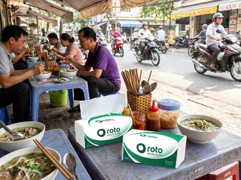 | Khăn giấy đa năng Roto | Gói lẻ | ~9.000 – 12.000 VNĐ/gói | Phổ biến, dễ mua, dùng tiện | Quán nhỏ, lượng khách ít |
