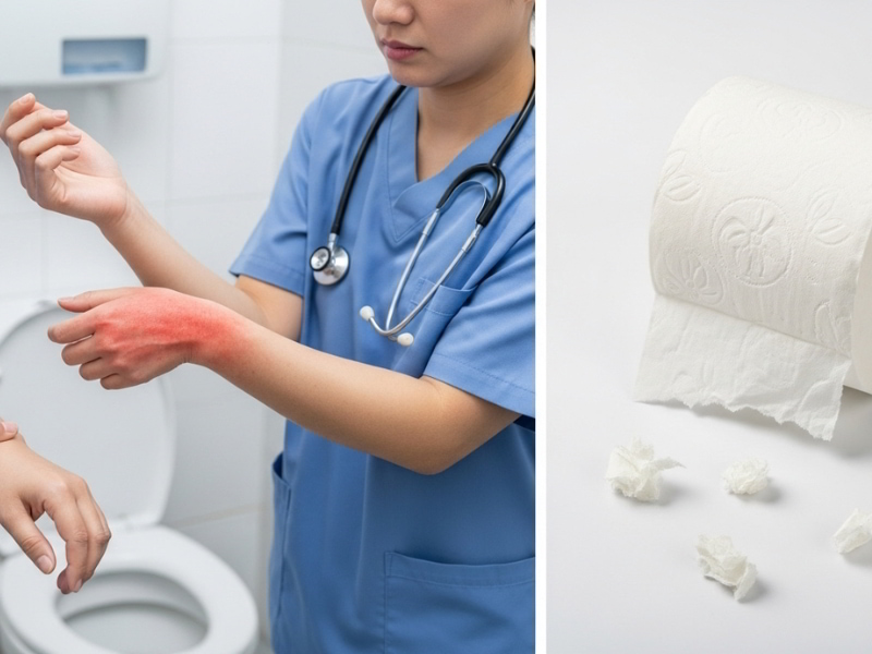 Thứ hai, nếu sử dụng các loại giấy giá rẻ, không kiểm định chất lượng, thì nguy cơ tồn dư hóa chất tẩy trắng, sợi giấy thô ráp, hoặc vi sinh vật tồn tại trong giấy tái chế là điều rất đáng lo ngại. Những rủi ro này có thể dẫn đến kích ứng da, viêm nhiễm phụ khoa, dị ứng vùng kín, hoặc thậm chí ảnh hưởng hệ hô hấp nếu hít phải bụi giấy.