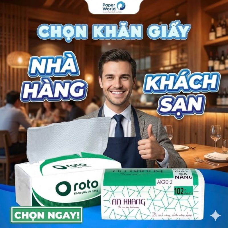 Khăn giấy Thế Giới Giấy an toàn, không bụi, thân thiện môi trường. Tư vấn miễn phí giúp nhà hàng chọn đúng loại, tối ưu chi phí và trải nghiệm.