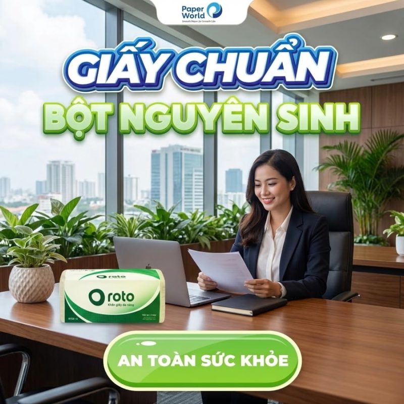 Văn phòng làm việc là nơi có mật độ sử dụng khăn giấy lau tay thường xuyên: sau khi rửa tay, vệ sinh bàn phím, thiết bị văn phòng hoặc khu vực phòng họp. Với nhu cầu này, Thế Giới Giấy đề xuất dòng Roto gói rút hoặc giấy gấp Z – giấy mềm, dai, dễ sử dụng với hộp đựng chuyên dụng. Đây là lựa chọn lý tưởng cho các công ty cần mua khăn giấy lau tay cho công ty tại Bình Dương với giá sỉ tốt và dịch vụ giao hàng nhanh. Sản phẩm không chỉ tiện lợi mà còn giúp văn phòng luôn sạch sẽ, hiện đại, chuyên nghiệp hơn trong mắt khách hàng và nhân viên.