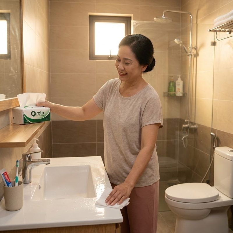 Khăn giấy lau tay dùng một lần được đánh giá là giải pháp an toàn và vệ sinh nếu chọn đúng loại đạt tiêu chuẩn. Việc sử dụng khăn giấy mới cho mỗi lần lau tay giúp hạn chế tối đa nguy cơ vi khuẩn lây chéo, đặc biệt trong môi trường nhà vệ sinh gia đình có nhiều người sử dụng chung.