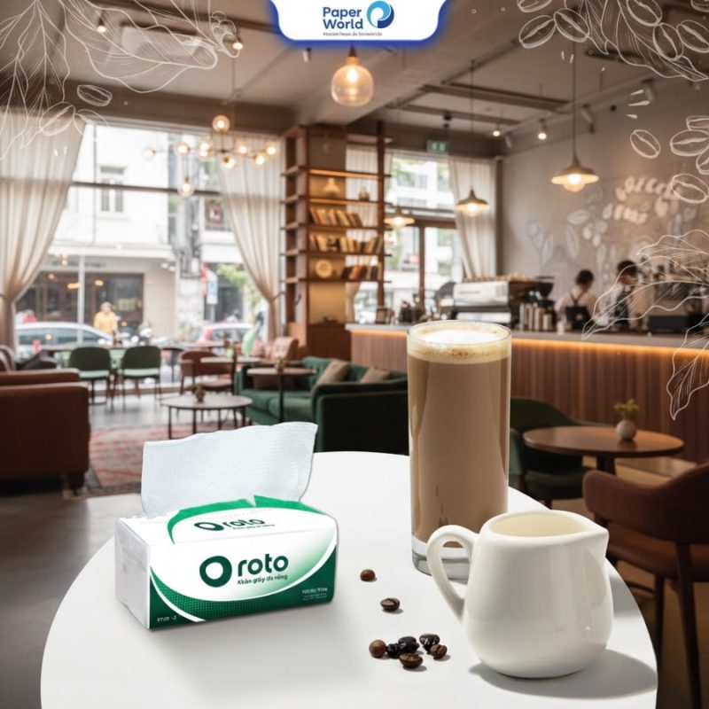 - Quán cà phê take away & chuỗi: Cần khăn giấy đóng gói chuyên nghiệp, có thể in logo thương hiệu, như Japani 20-2 hoặc Roto 20-2. Hộp rút giấy trên quầy giúp tăng trải nghiệm người dùng.