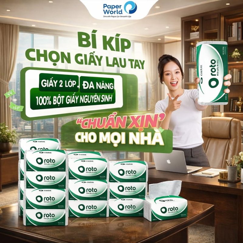 | Khăn giấy cao cấp cho khách VIP | Japani, Roto | 22gsm+, 2 lớp | 20 gói / thùng | Từ ~450.000đ | Phòng họp, showroom, khu vực tiếp khách VIP |